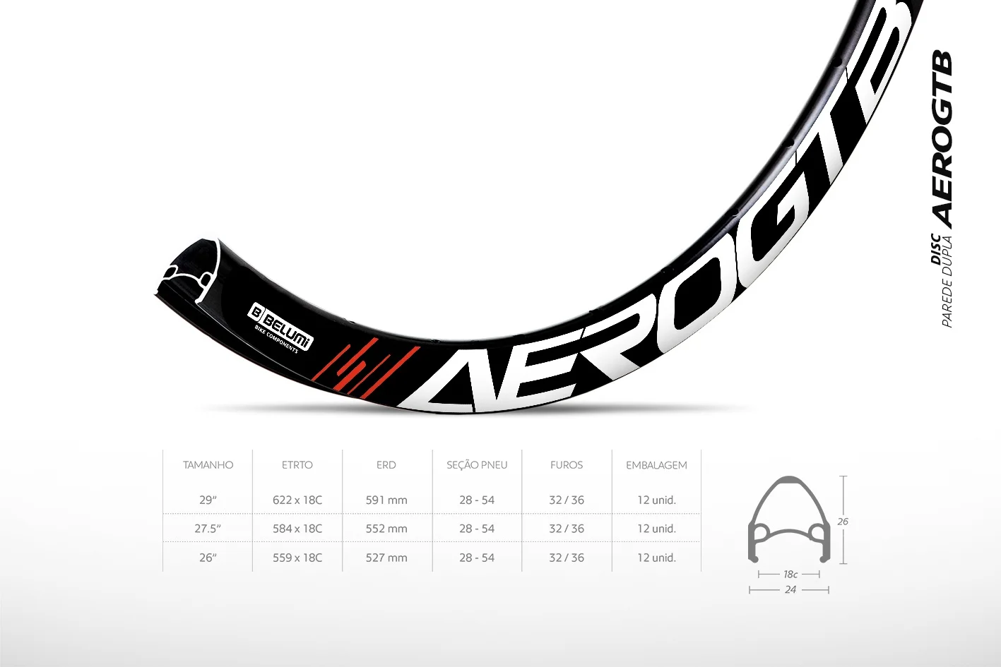 Aro Aero GTB 29 Parede Dupla 36F Preto Disc Racing - Belumi